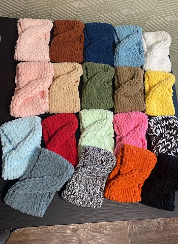 Ausaines, šalles,bērnu sedziņas.