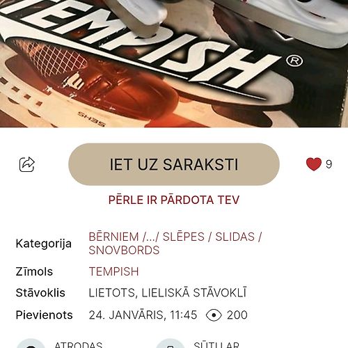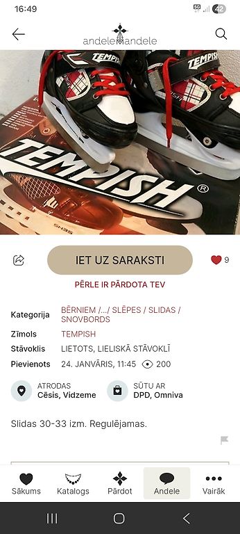 Paldies, izsūtīts tika laicīgi un sapakots labi. Sludinājumā tika norādīts, ka slidas ir lieliskā stāvoklī, tomēr saņemot bija funkcionāls trūkums- lipekļi, kas ļoti vāji turas. Šī informācija būtu noderējusi izvērtējot vai pirkt šāda stāvokļa slidas par konkrēto summu. Citādi viss labi un kārtībā. Komunikācija laipna, tomēr par atgriezšanu neizdevās vienoties.