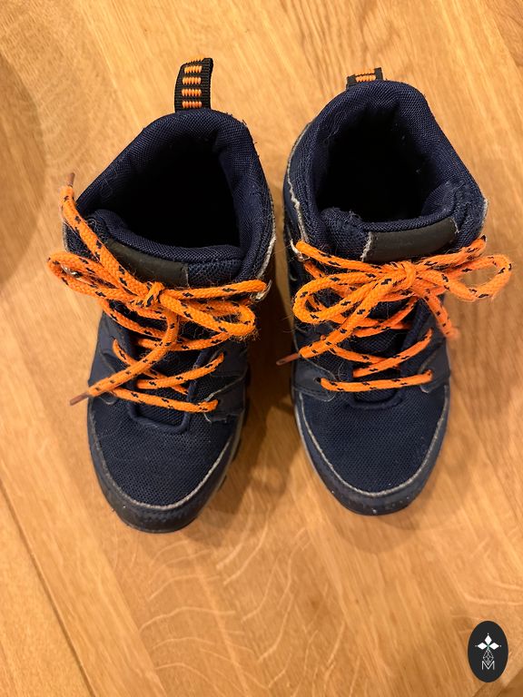 Mėlynos spalvos šiltos batai, pagaminti iš audinio ir dirbtinės odos. Gamintojo dydis 32, vidinis padas 20 cm.