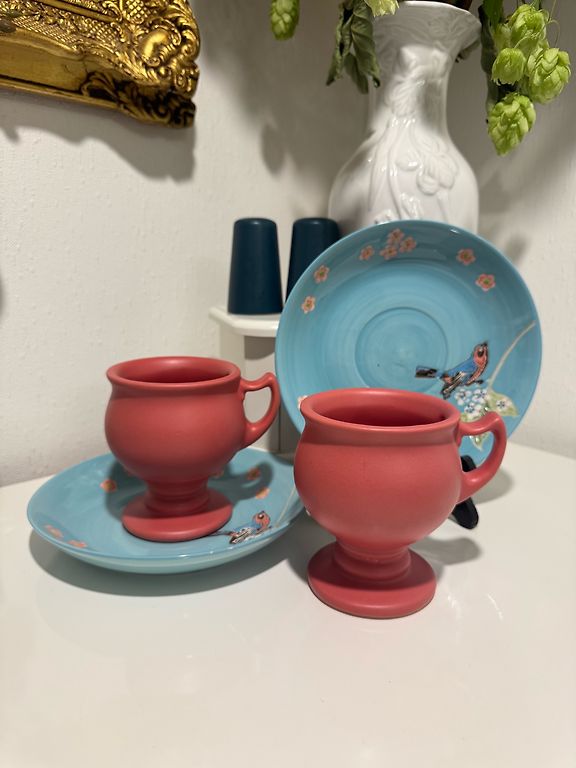 Porcelain tea, coffee set. The set includes 5 small cups with saucers, a sugar bowl, a milk jug, and a tea/coffee pot. Original https://www.ebay.com/itm/222741368974 I can consider your price offer.