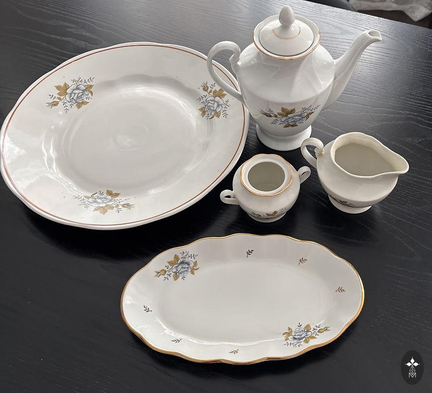 Aijos servizo indai, gerai išsaugoti, be įtrūkimų ir nusidėvėjimo, arbatinukas - 5 eur, grietinėlės indelis - 3 eur, pyragų lėkštės 5 vnt. (15 cm) - 2 eur už vienetą.
