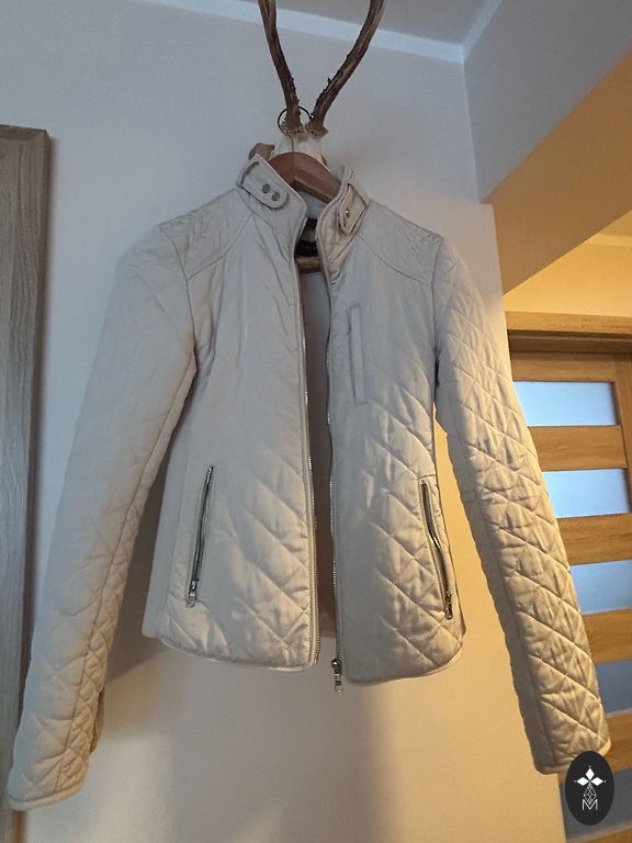 Бархатная куртка-бомбер, очень приятный материал, актуальный цвет розовое золото. Без дефектов.
