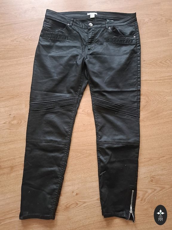 Liemens 90 cm, klubai 98 cm, bendras ilgis 98 cm. Audinys šiek tiek elastingas. Paskutinėje nuotraukoje matomas defektas.