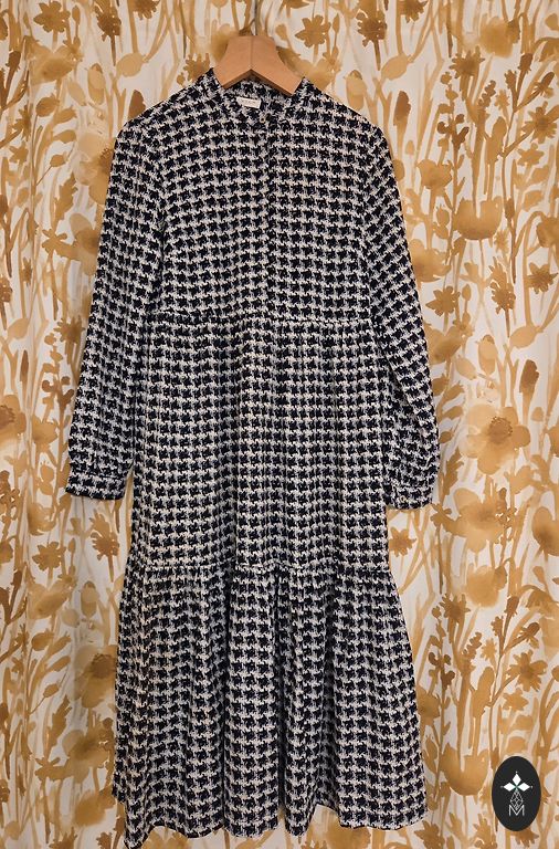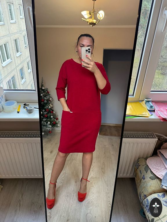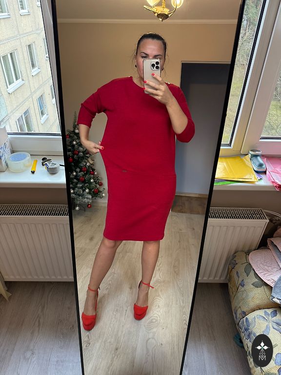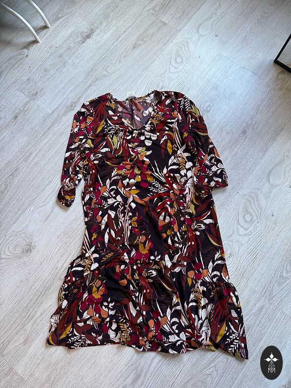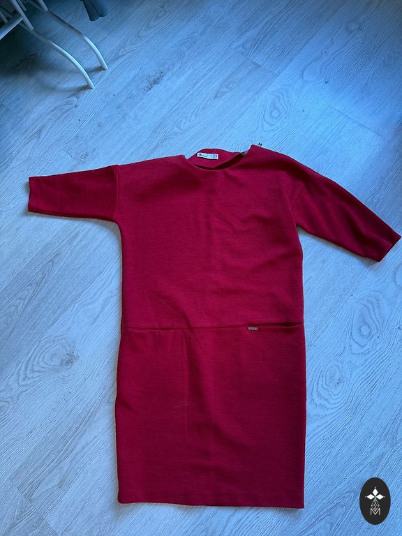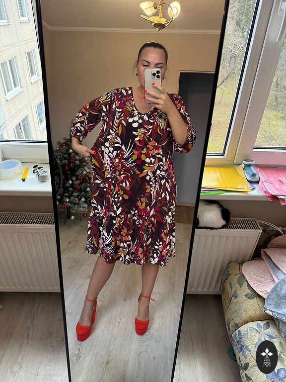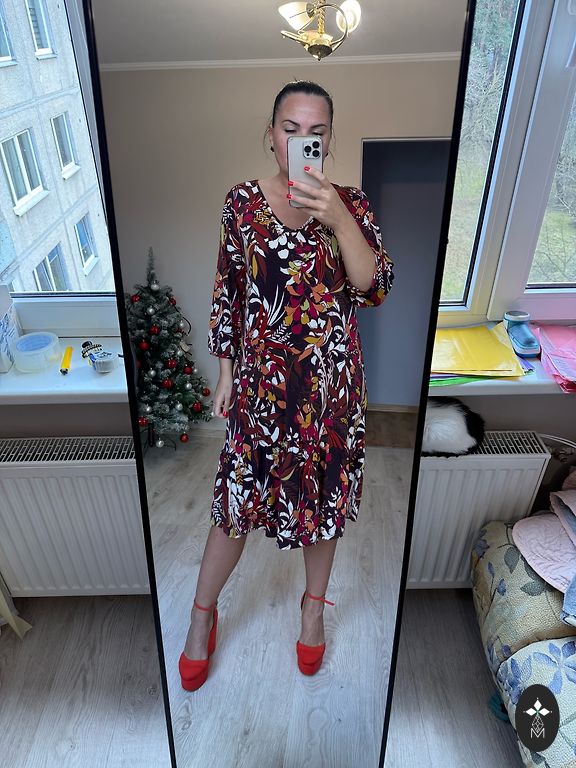 Ilgis 103 cm, krūtinė 52 cm x 2, klubai 65 cm. Suknelė turi kišenes abiejose pusėse. Dydis 44.