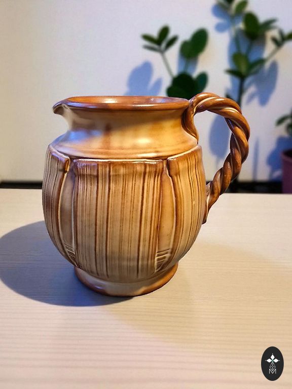 Moliniai ąsotis ir puodeliai. Plonas molis. Ąsočio talpa 2-3 litrai. Puodeliai 150-250 ml. Ąsotis ir puodelis puikios būklės. Vienas puodelis su įskilimu (matomas nuotraukoje).
