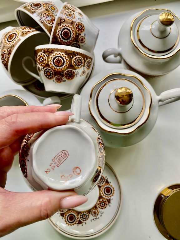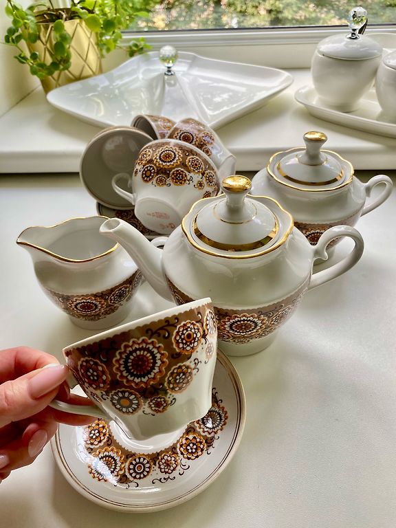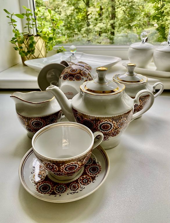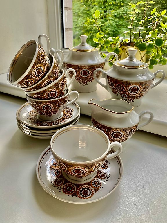 Molinis ąsotis ir puodeliai