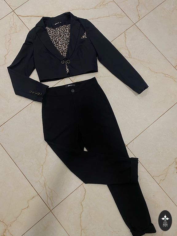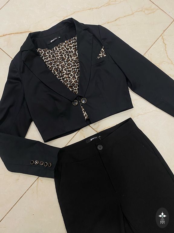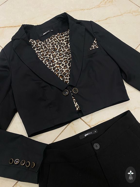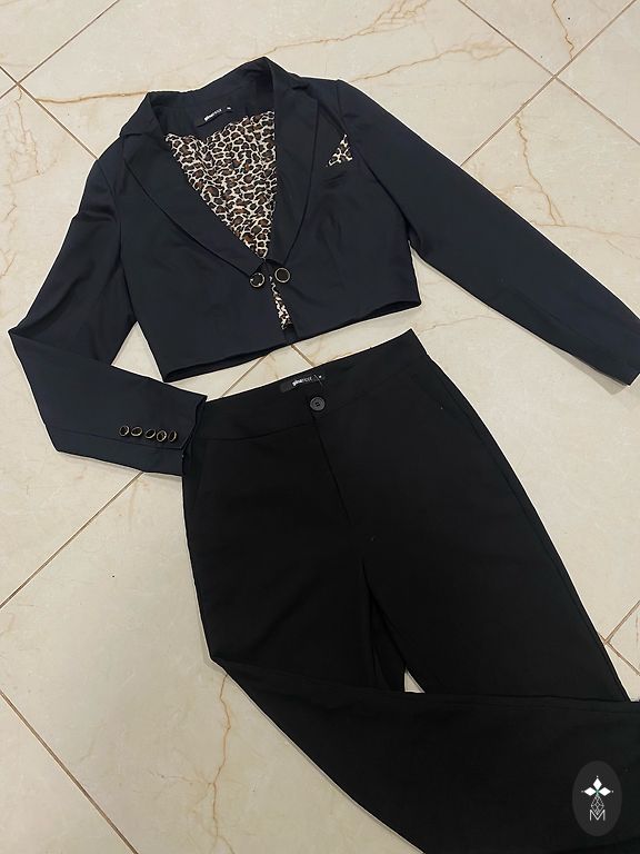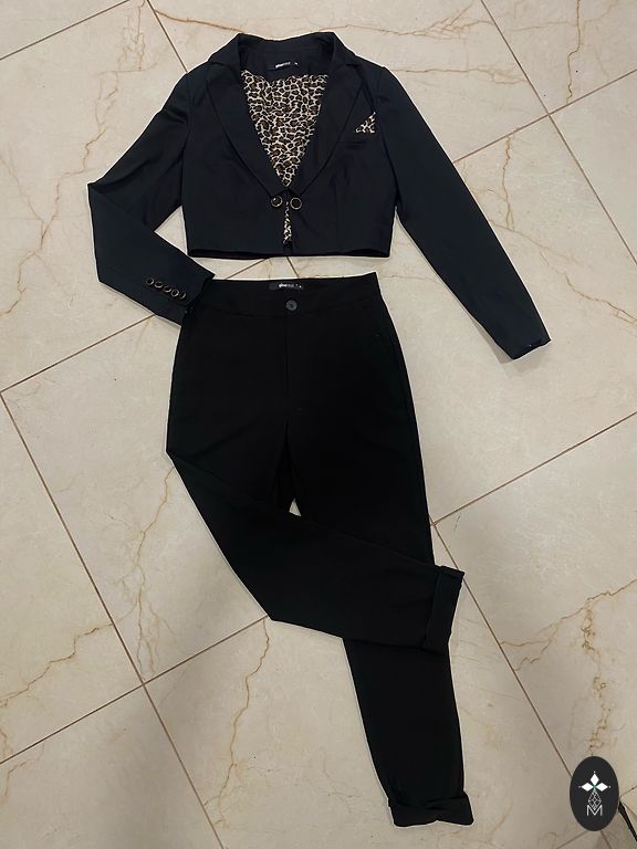 Asümmeetriline seelik ja kimono-stiilis pluus. Pluus on siduv. Pluusi alla võib kanda sama värvi särki või aluspesu, kuna üks lill rinnal on läbipaistev.