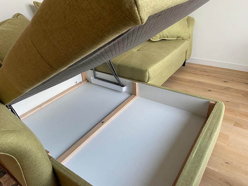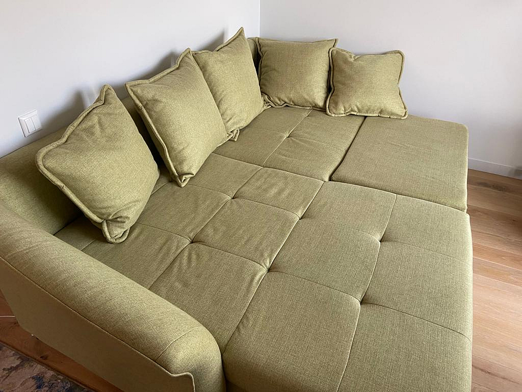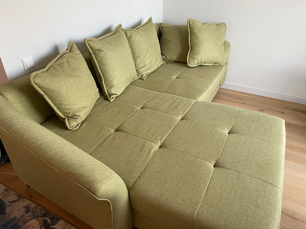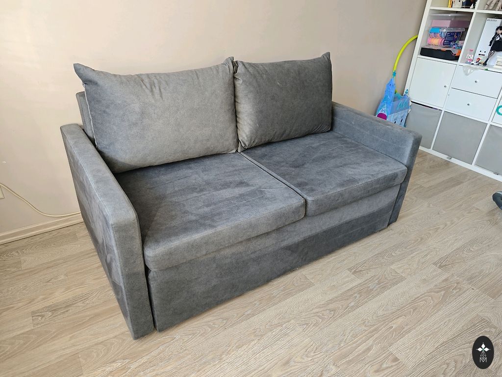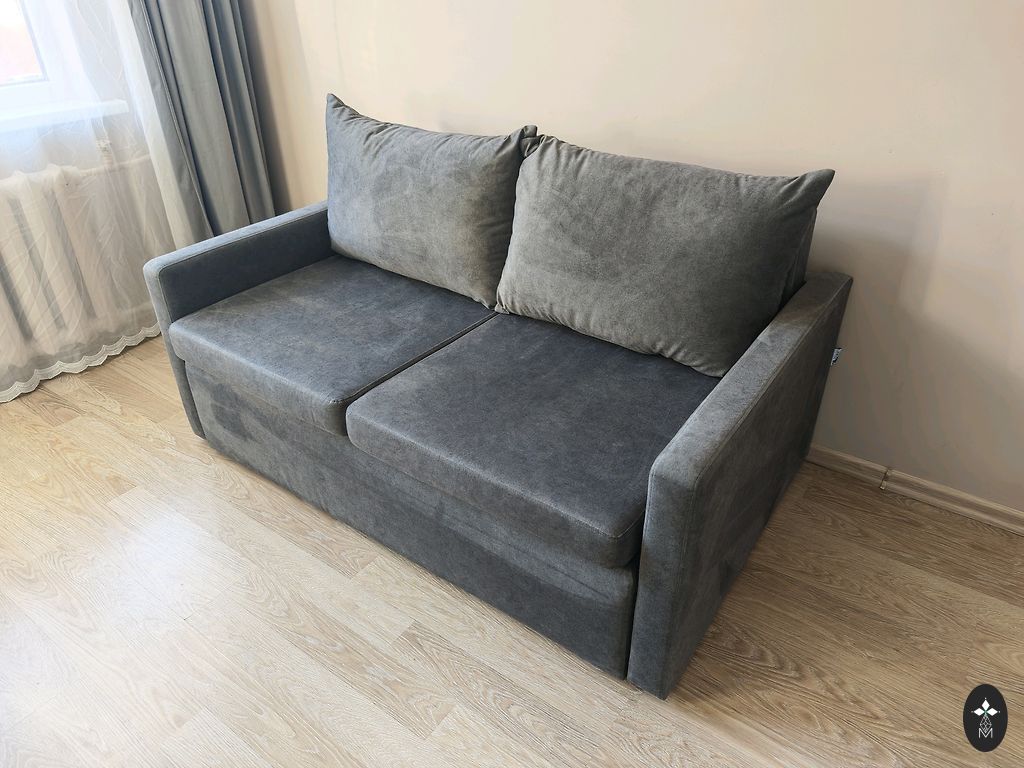 Uus diivan. Pesukastiga. Ortopeediline madrats (keskmise jäikusega). Väga stiilne ja mugav. Helehall värv. Kangas on pehme. Puhastatakse niiske lapiga.