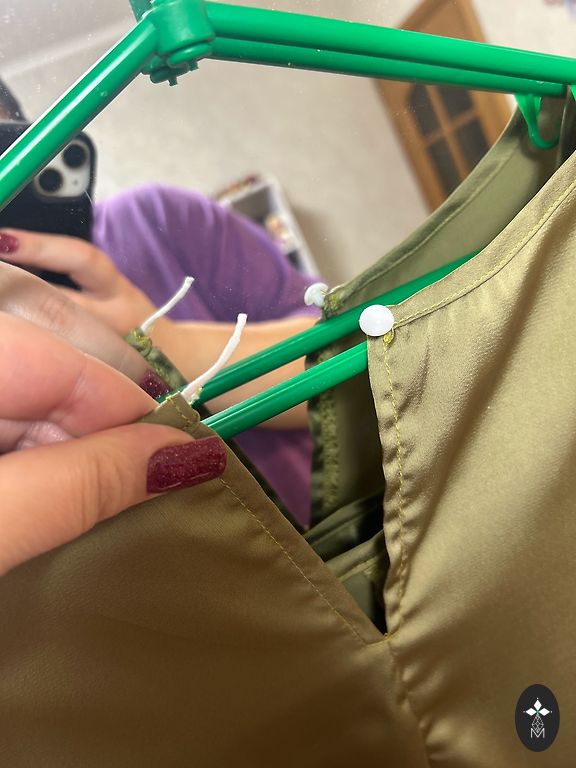 Värv - midagi lõhevärvi, roosa ja oranži vahel. Ees lõhik, samuti kaunid lõiked varrukatel.