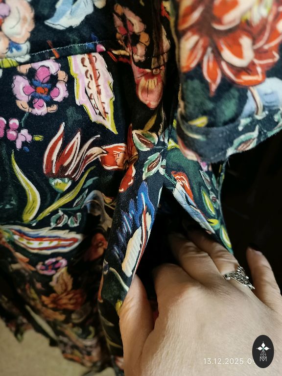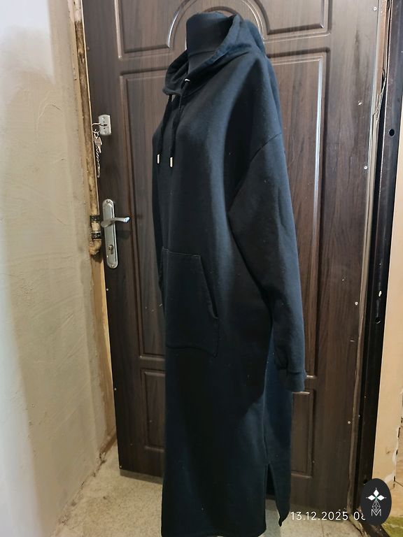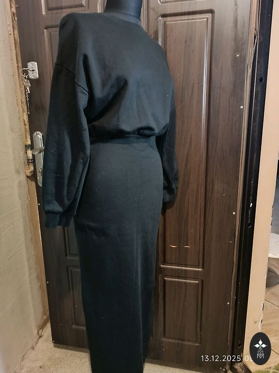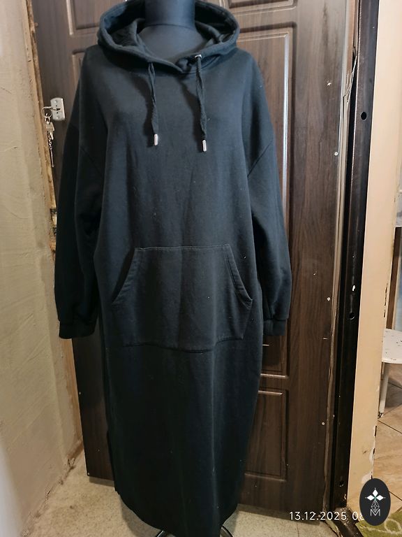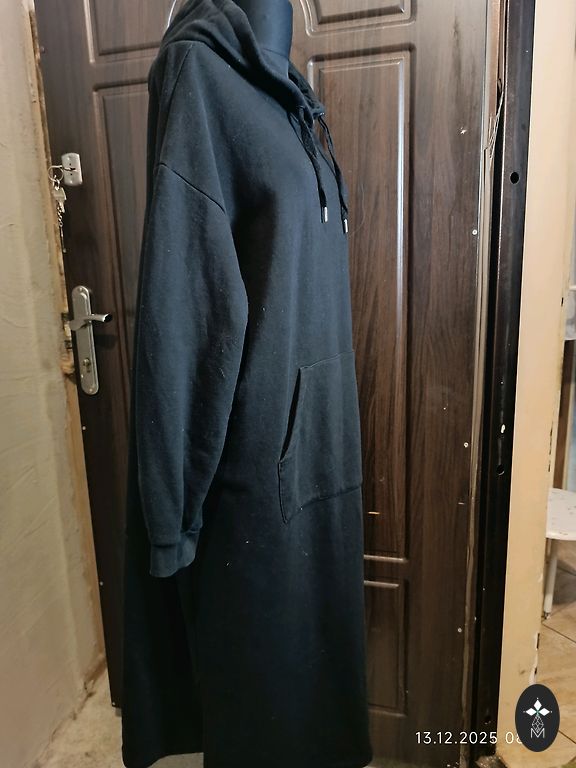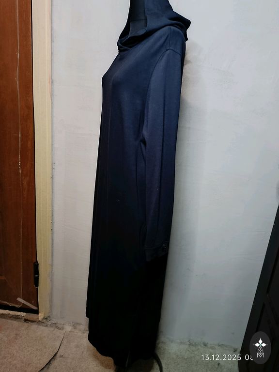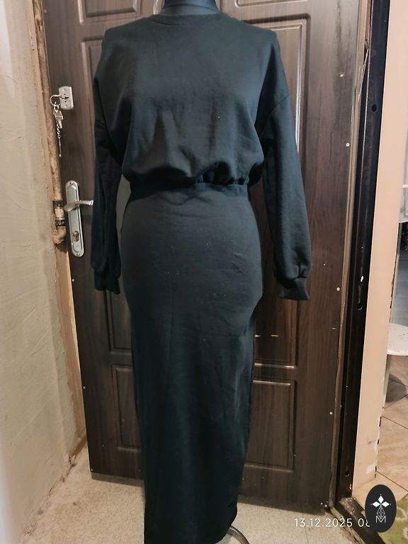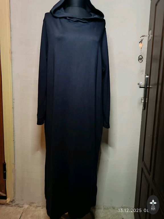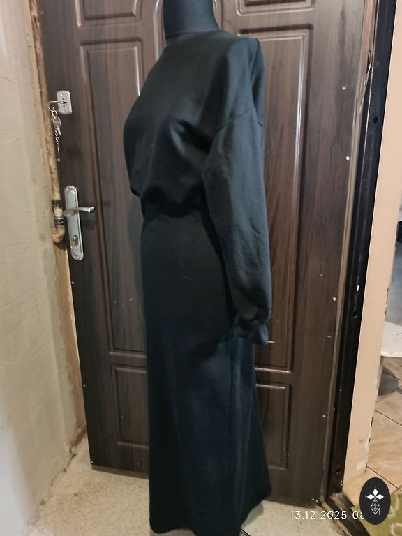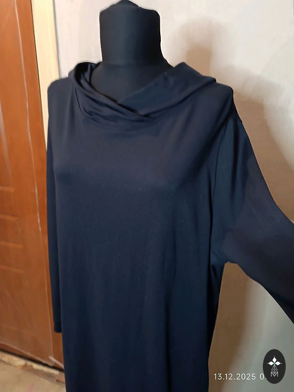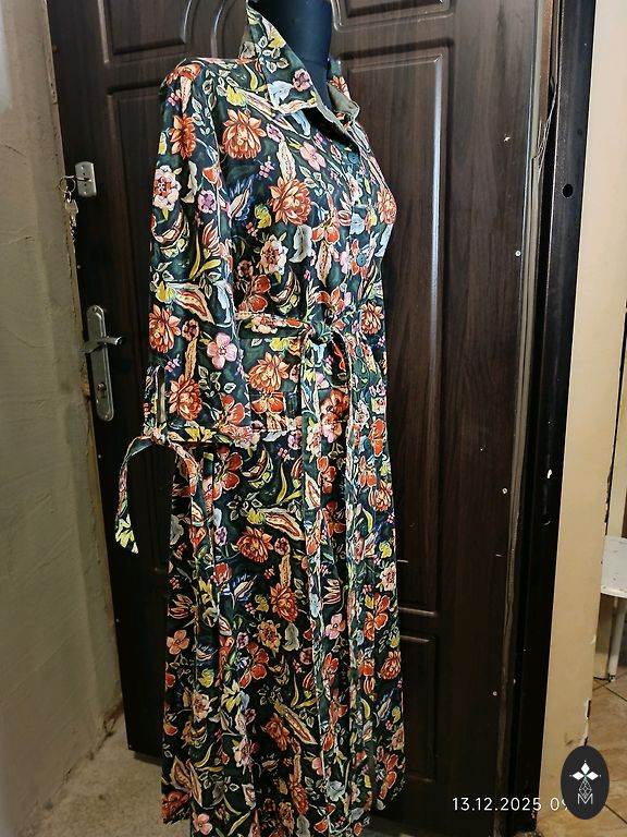 Kleita vasarai, mazliet staipiga auduma, kokvilna ar elastānu. Garums priekšā ap 110 cm, aizmugure 120 cm, krūtis 42 cm.