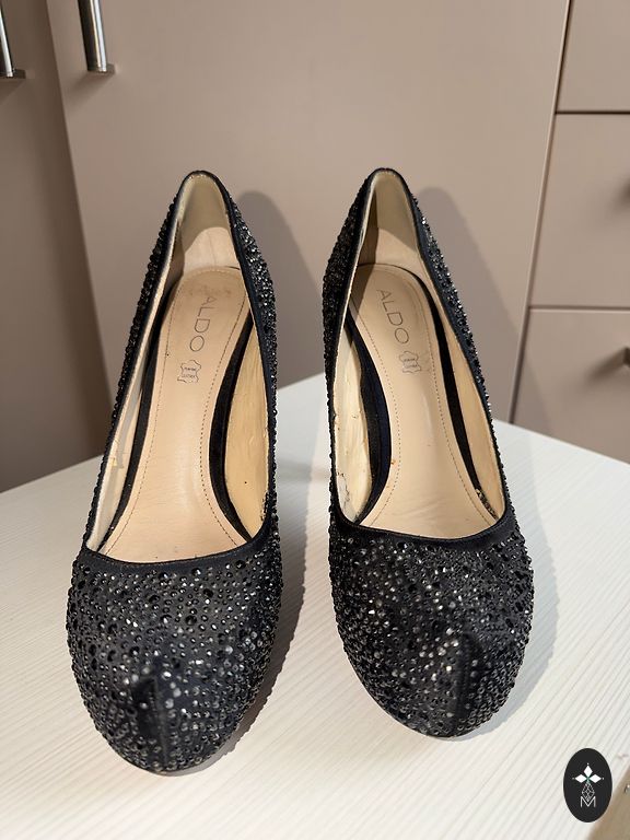 41. Размер, кожаные туфли [лак], на одном каблуке небольшой дефект, но он закрашен и не заметен, очень удобные, мягкие.