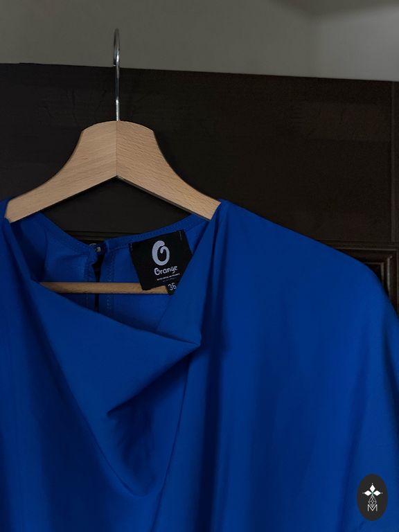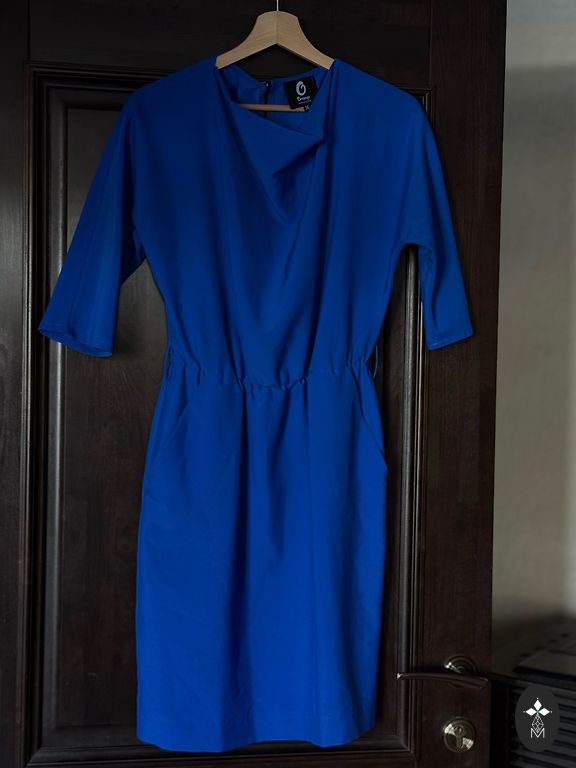 Viegla un ērta vasaras kleitiņa. XL izmērs. Aizmugurē rāvējslēdzējs, audums nestiepjās un neburzās. Garums - 100 cm., krūtīs - 56 cm., viduklī - 54 cm., gurnos - 56 cm., piedurknes - 22 cm.