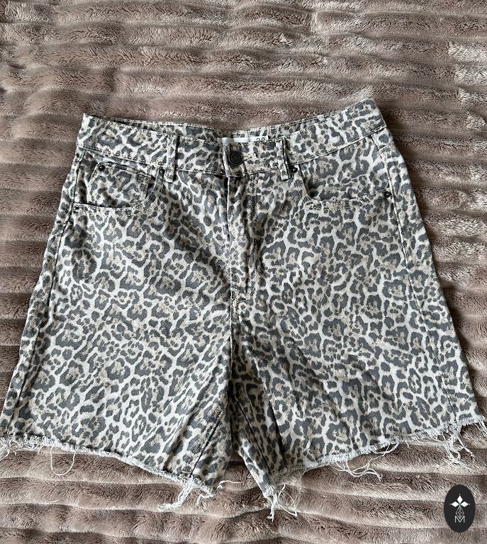 Stilingi plači šortai su labai gražiu leopardo raštu. Dydis nurodytas kaip 42. Tinka 40 ir 42 dydžių moterims. Spalva tokia, kaip parodyta nuotraukose internete.