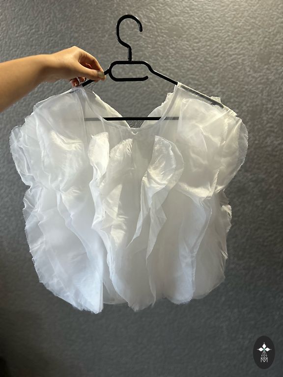100% kokvilna, regulējamas lencītes, jostiņa uz gumijas, nestiepjot apakšmala 40 cm, krūtīs 38, garums bez lencītēm 49 cm.