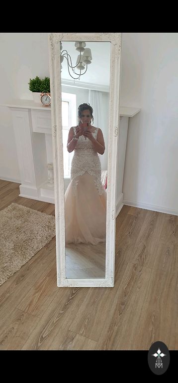 Uz pasūtījumu šūta universāla kāzu kleita/kostīms, kas var kalpot arī citiem dzīves pasākumiem/notikumiem ( grūtniecības fotosesija, kristības, fotosesija vai kāds cits svinīgs pasākums). Derēs no 40.-44.izmēram Maigā persiku-bēšā tonī ar vintage rose akcentiem.