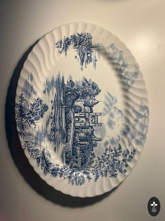 Bohemian Blue glass, 1970-75, hand painting.
