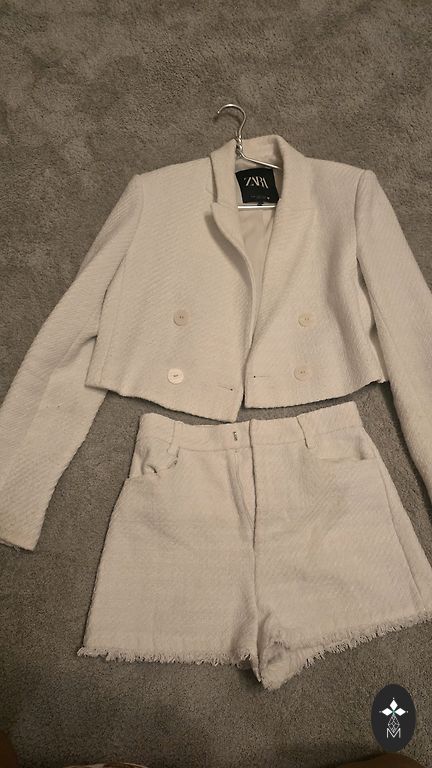 Gražus, lengvas, vasarinis kostiumas. Šortai - elastinė juosmens juosta. Palaidinė laisva, gražios rankovės su iškirpimais. Dydis M