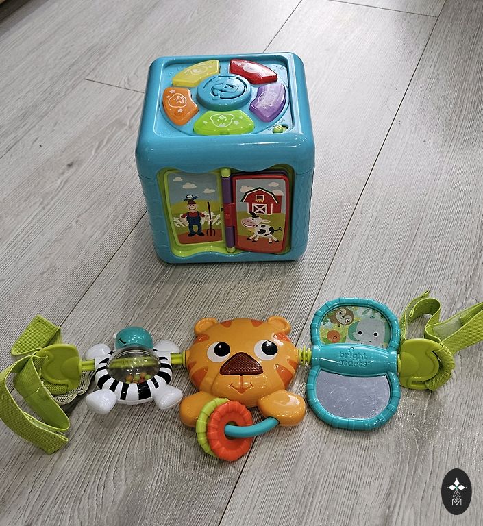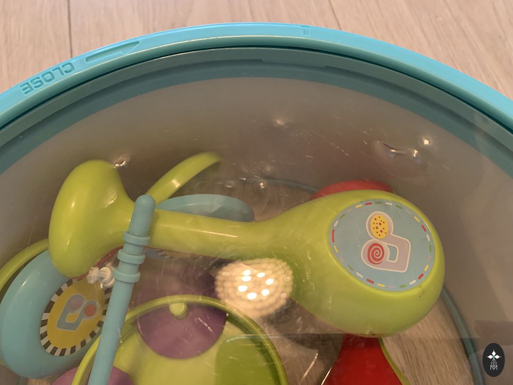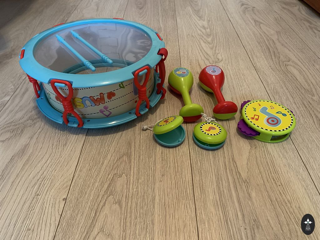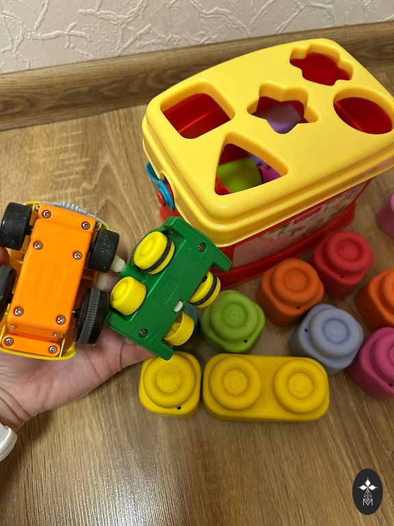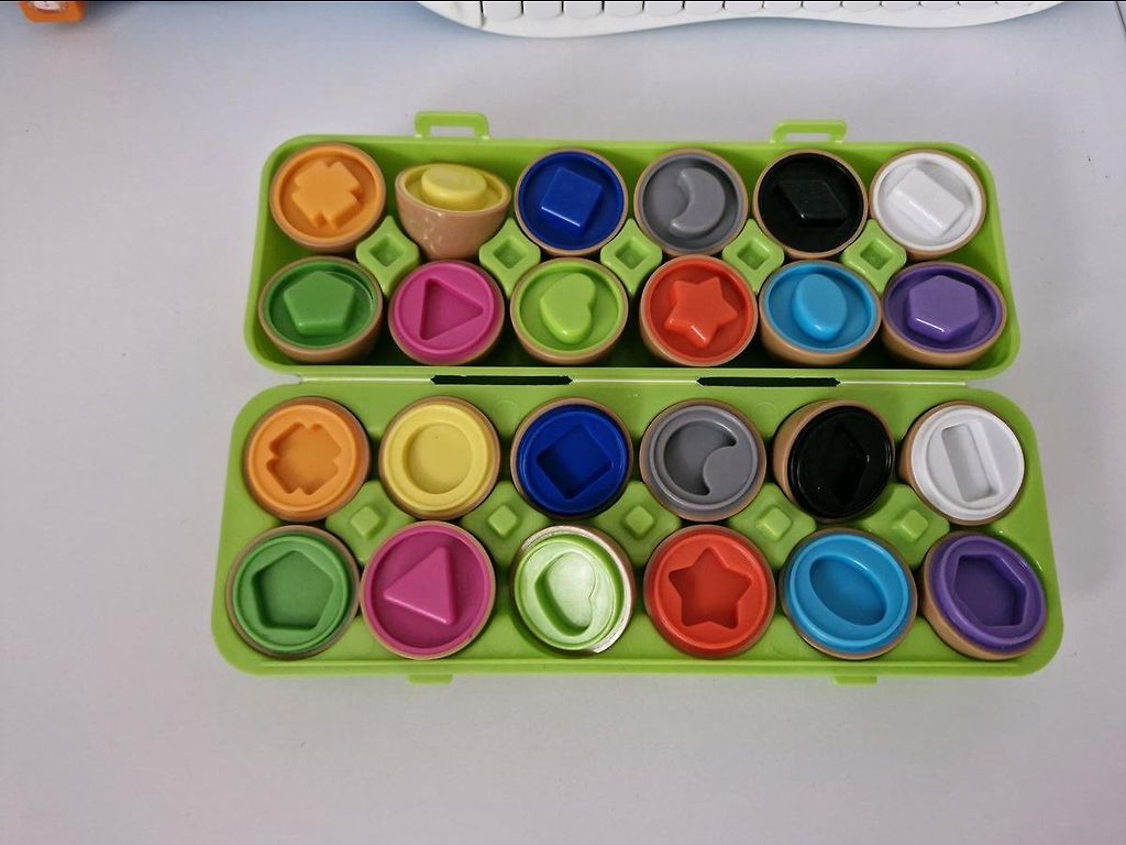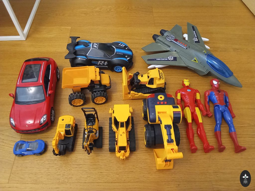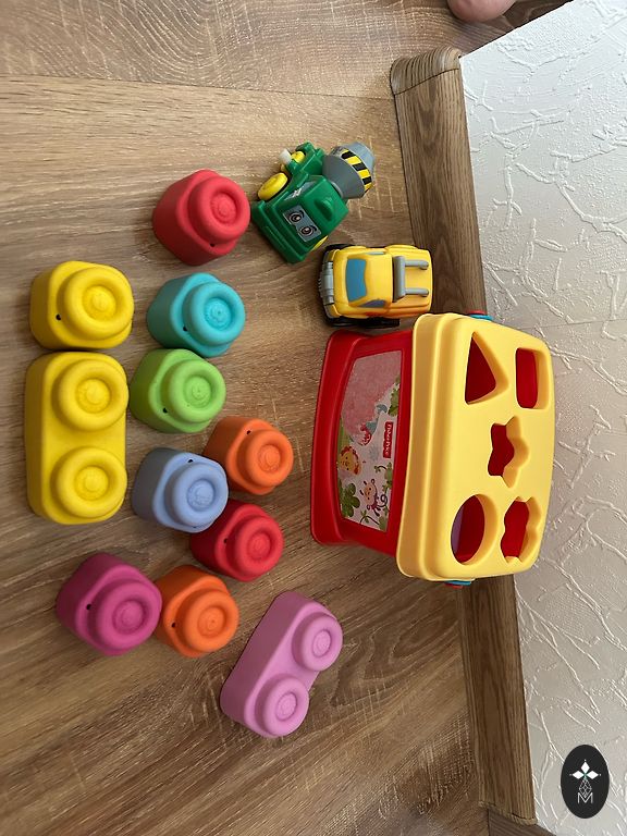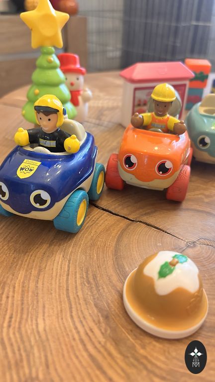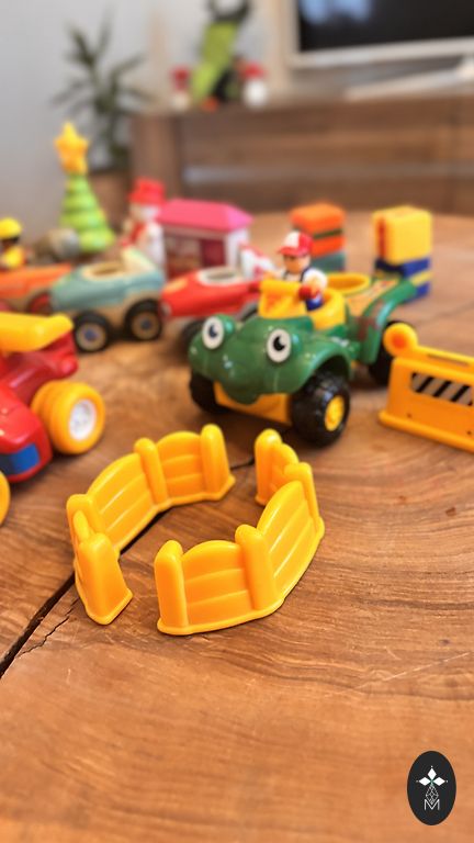 Apvalus sraigtasparnių aikštelė yra balta ir raudona, sraigtasparnis yra raudonas. Kelio dėlionės yra raudonos spalvos. Mašinėlė yra raudonos spalvos. Degalinė yra oranžinės spalvos. Dvi arkos yra geltonos spalvos.