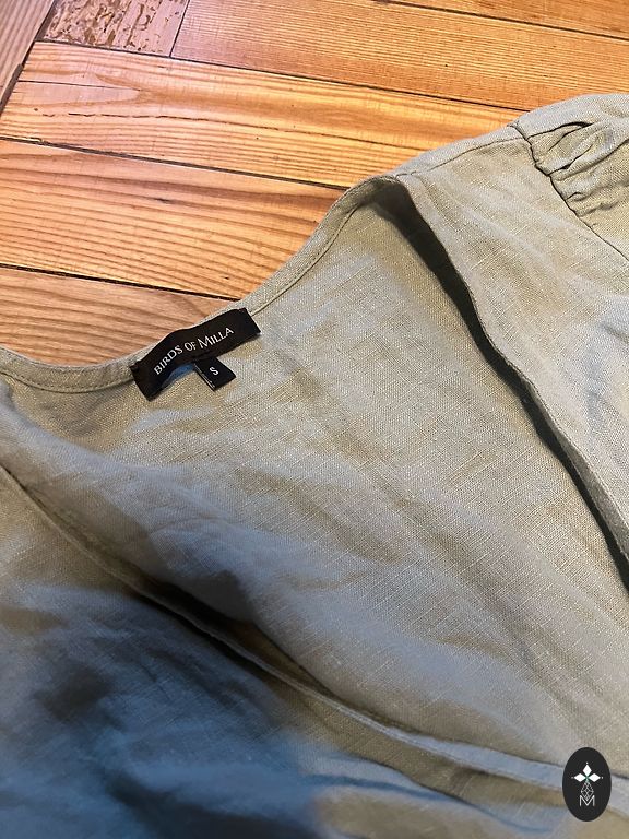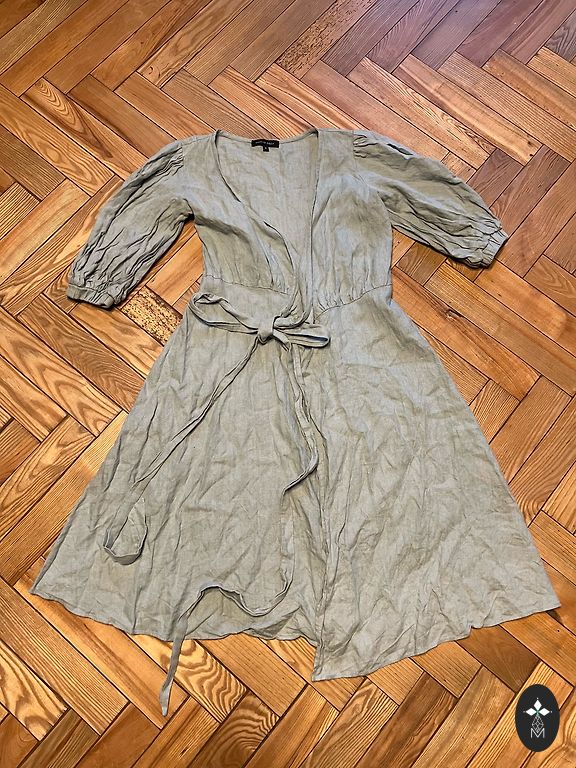 Mango lininė suknelė. Dydis S, tinka ir M. Juosmuo surišamas. Trūksta vieno mygtuko apačioje, bet tai nėra labai pastebima. :)