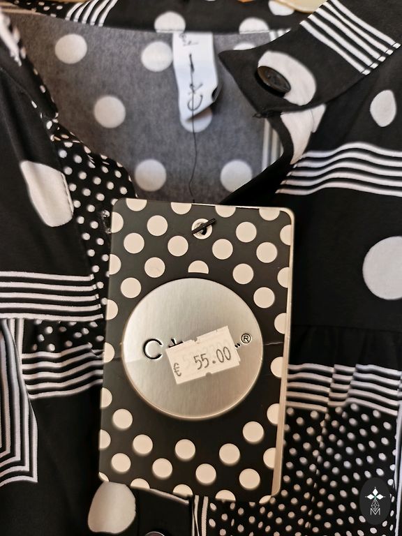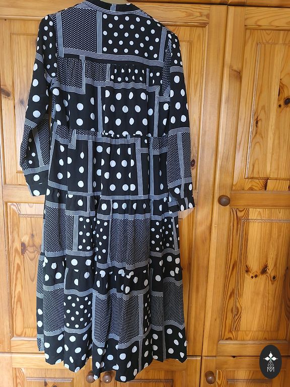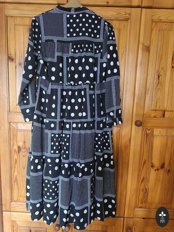 Matmenys: krūtinė 87 cm, talėja 74 cm, klubai 100 cm. Ilgis 120 cm.