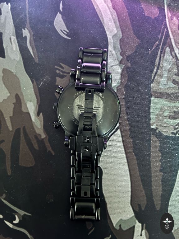 Emporio Armani watches in good condition. No scratches on the glass and top part, but there are scratches on the back where the battery compartment is.