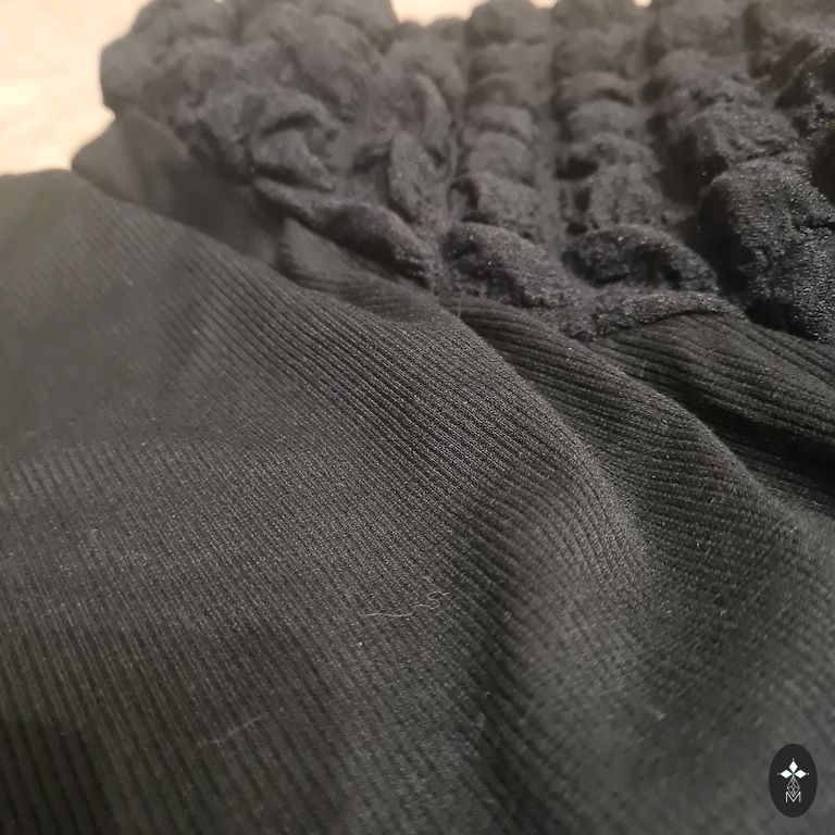 Jauna melna trikotāžas kleitiņa, ļoti mīksta, plāna materiāla, vidusdaļā savelkama. Pirkta firmas veikalā ārpus LV par 110 eiro. Garums 102 cm, platums izlaistā veidā 50 cm.