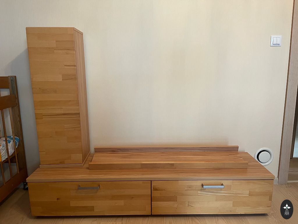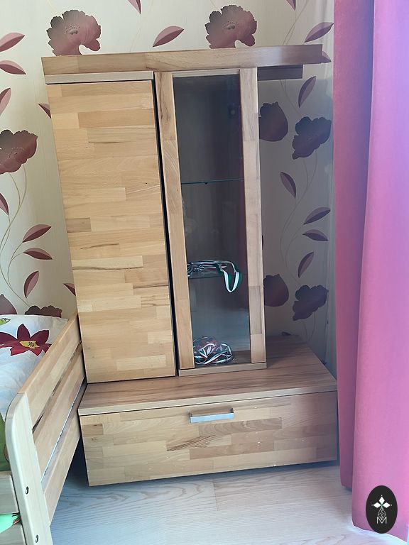 Gera, patvari ir kokybiška spinta virtuvės ar svetainės interjerui. Pagaminta Vokietijoje 1976 m., restauruota Latvijoje. Susideda iš dviejų dalių. Bendras aukštis = 197 cm, plotis = 146 cm, gylis apačioje = 50 cm/viršuje = 34 cm. Po restauravimo nenaudota. Puikios būklės.