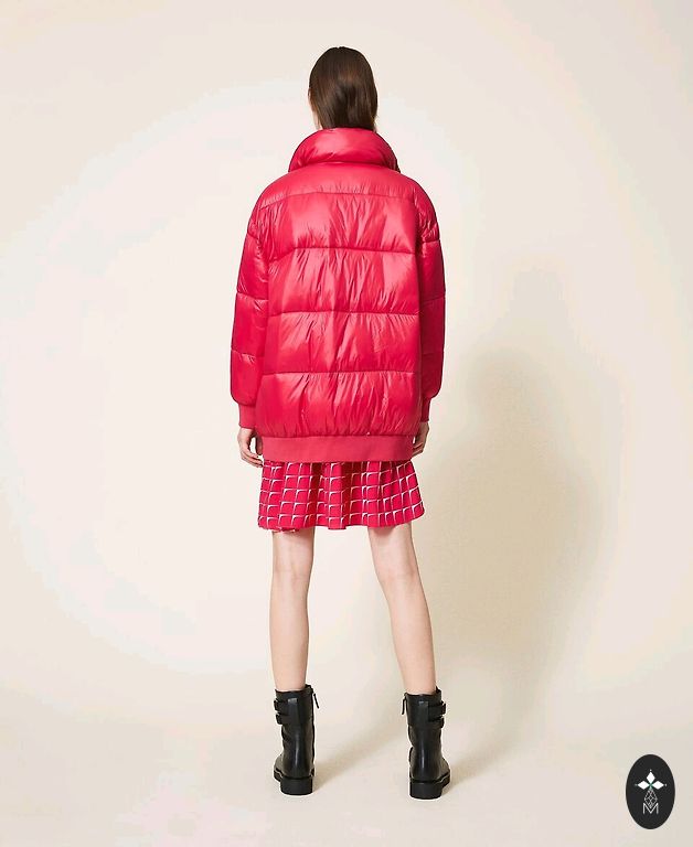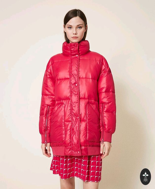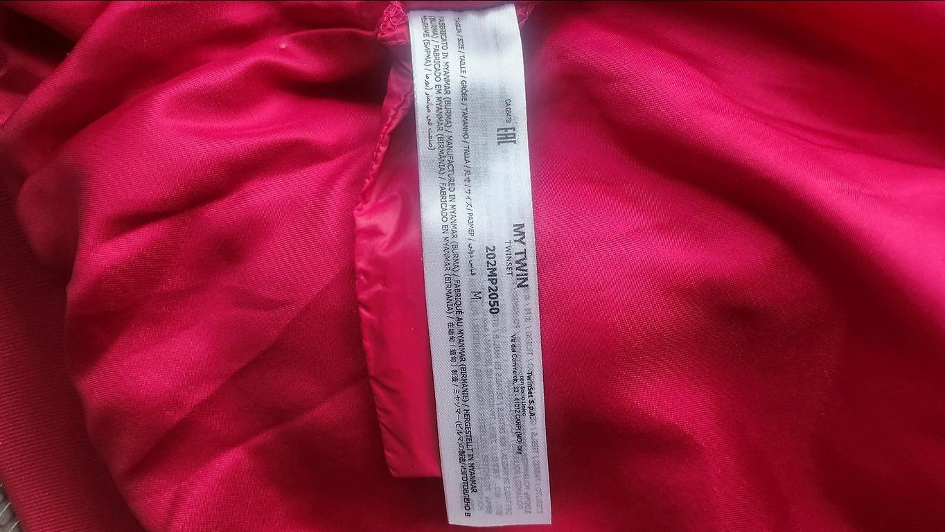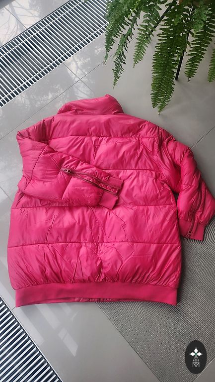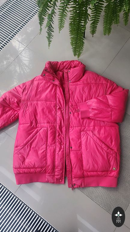 1x kantud demi hooaja jakk kuldse värvi aktsendiga kinnitusega, asümmeetriliselt paigutatud, pikkus 78 cm, varrukate pikkus 64 cm. Värv oranžikas punane, rohkem vastab viimasel pildil.