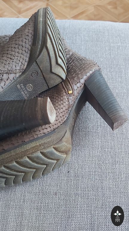 ar dekoratīvām detaļām papēža daļā,nobružātas ādas efekts(samtaini brūna)