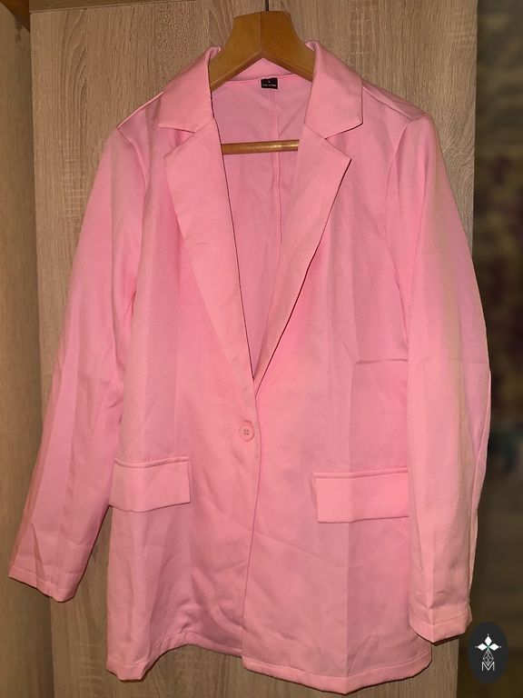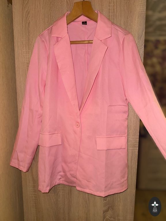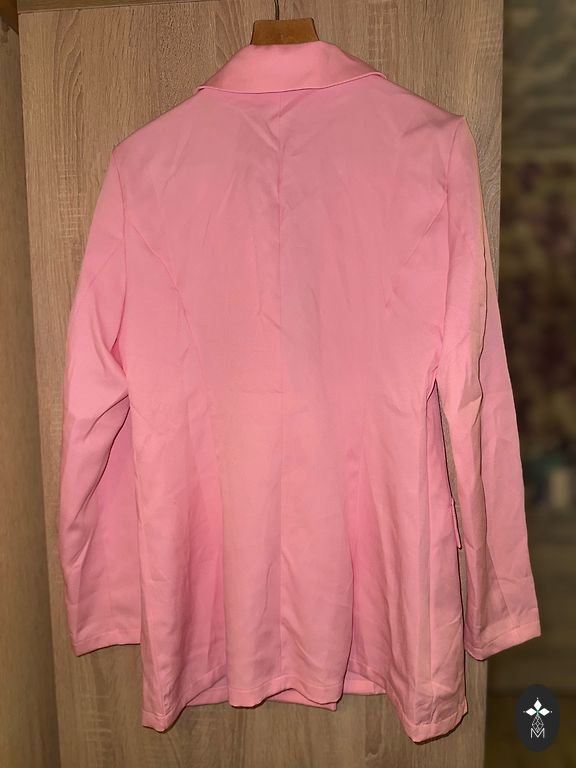 Nauja striukė su pusilgiais rankovėmis. 69 % viskozė, 31 % linas. Paminkštintos pečių linijos. Užsegimas su dviem sagomis. Įpjova nugaroje. Kišenės priekyje.