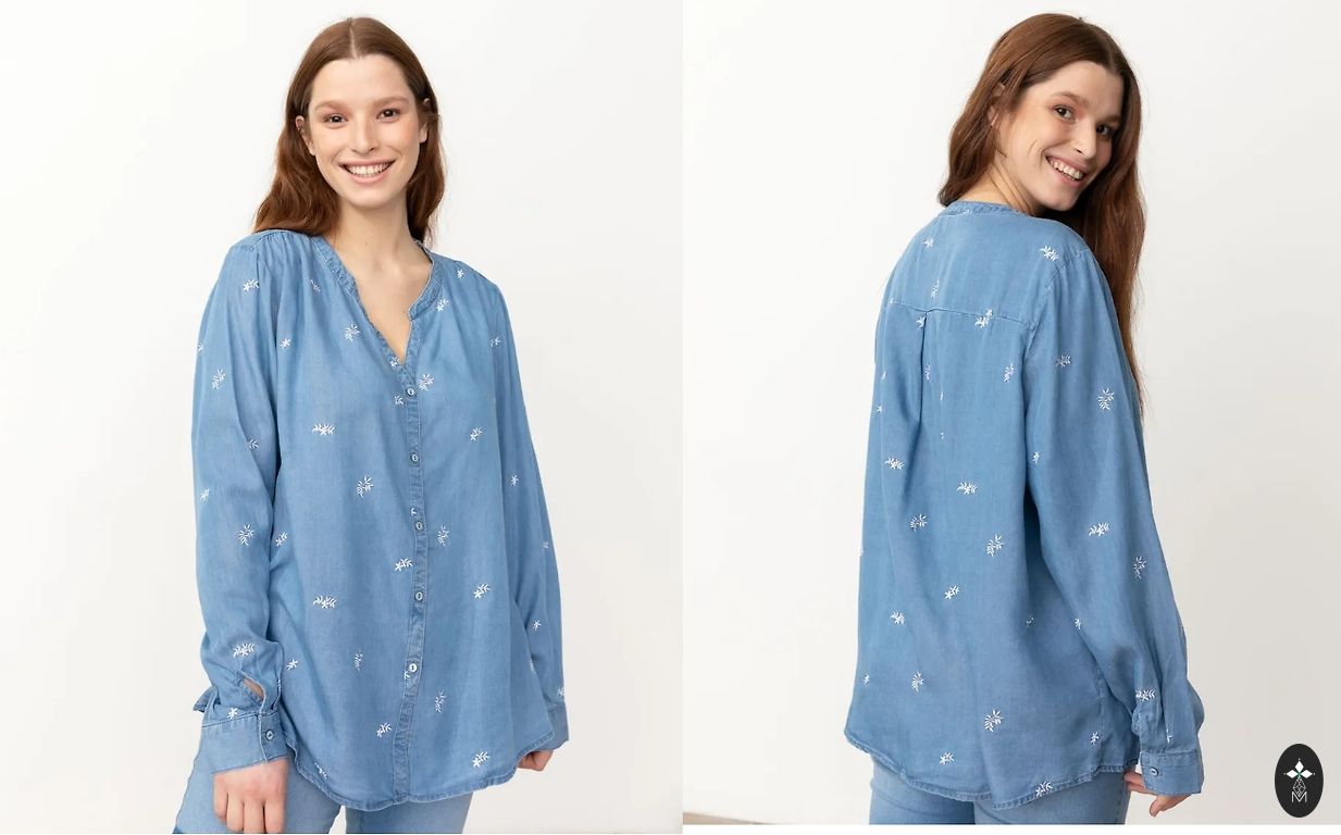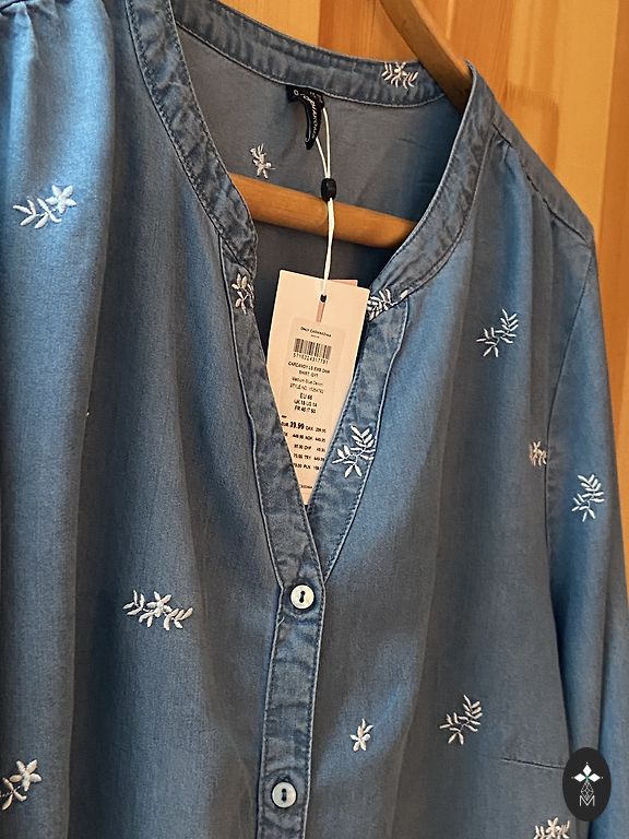 Kangas on sile, elastne, kortsumatu trikoo. Koostis: 35% viskoos, 65% polüester. Ülaosa pikkus: 70 cm. Rindkere: 120–140 cm. Talje: 117–135 cm. Puusad: 132–150 cm. Esimesed mõõdud on võetud kangast venitamata, teised venitades.