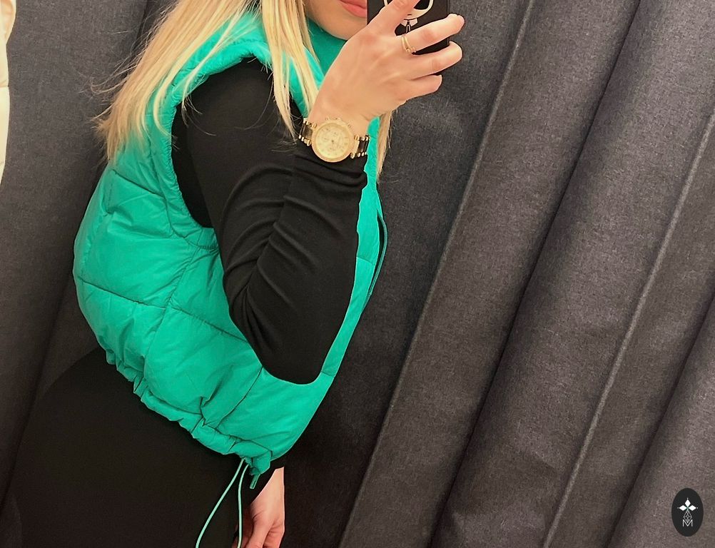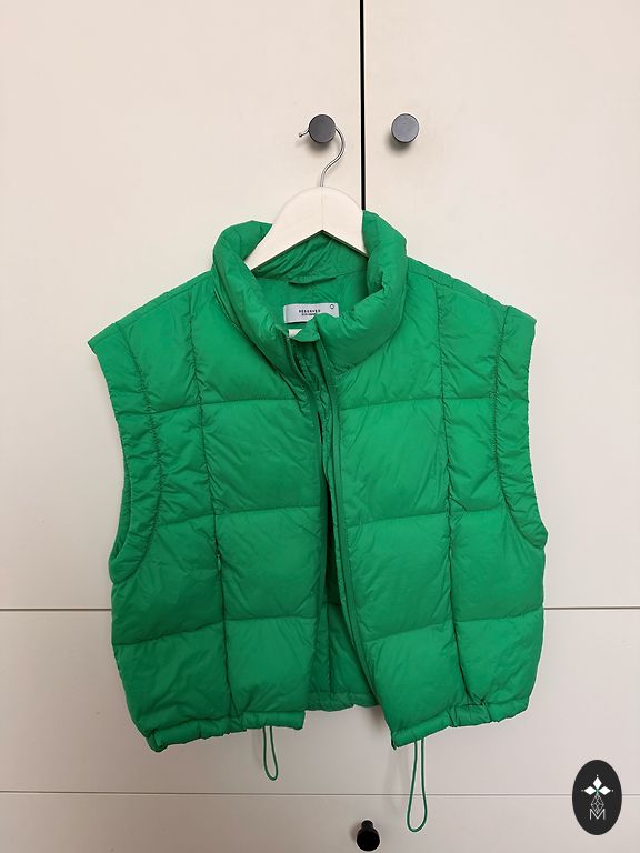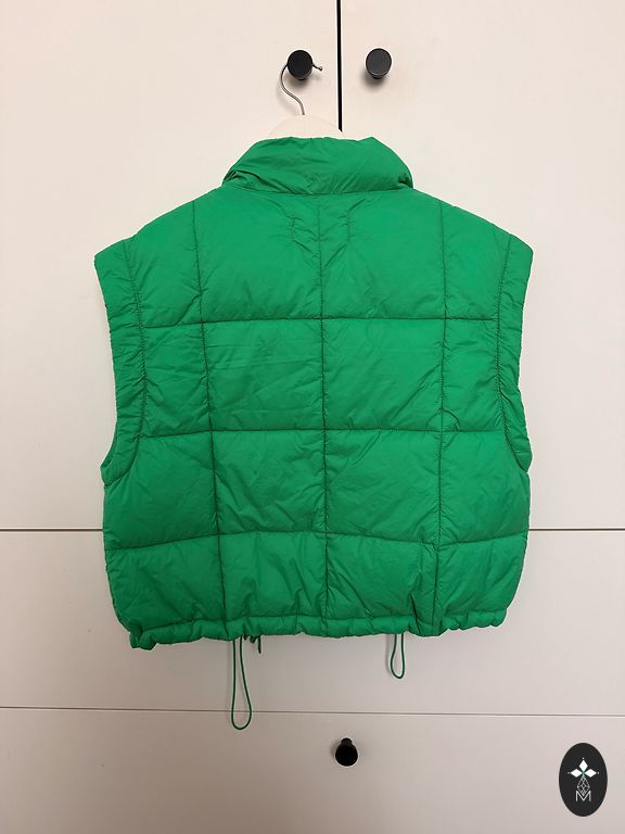 Insulated oversized vest. Size 34. Suitable for sizes XS to M. Two pockets at the front and two pockets on the sides, integrated into the side seams. Length (from the shoulder) 48cm Length (from the armpit) 25.5cm Width under the armpits 54cmx2 (bottom width is the same)