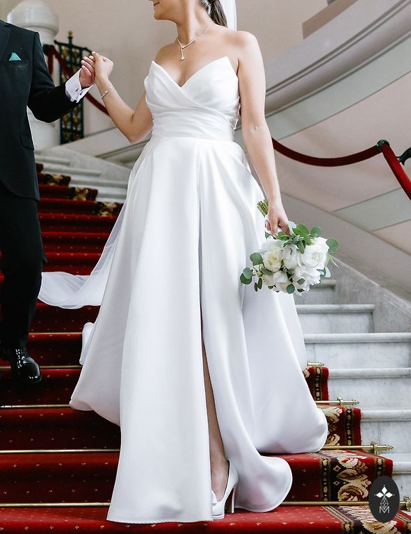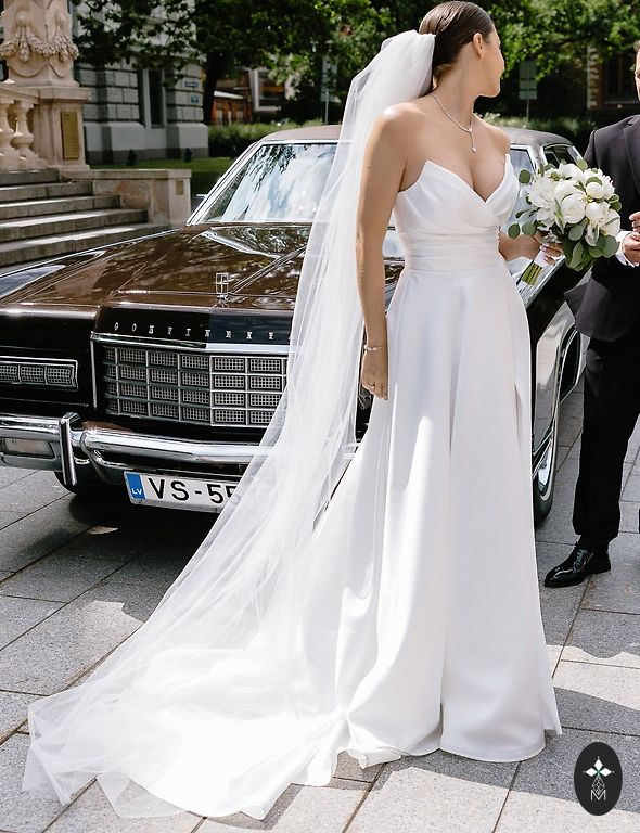 Maitsekas valge pulmakleit. Minu pikkus on 164 cm, tavaline riiete suurus 38-40 EU. Kleidi suurus on reguleeritav korseti abil. Kantud üks kord. Pärast keemilist puhastust. Rohkem teavet privaatselt.