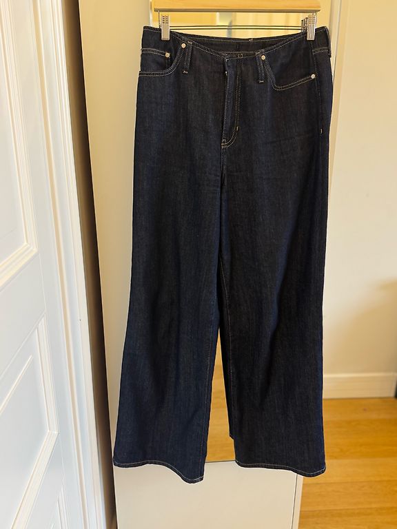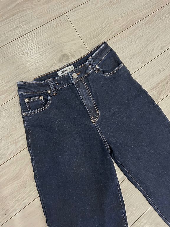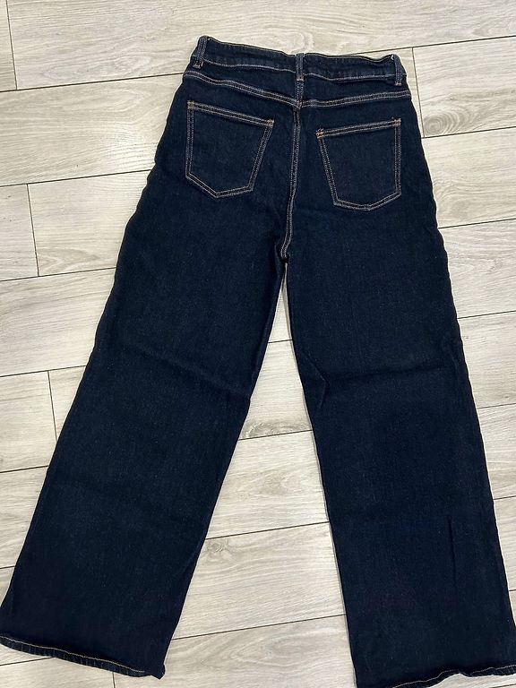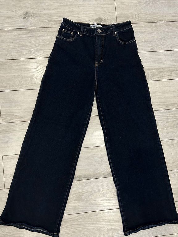 7/8 RIANI džinsi: piecu kabatu paaugstināta piegriezuma džinsi jaunā, modernā O-veida piegriezumā ar nodilušām vietām un vēsu mazgāšanu no 100% kokvilnas. Bez jostas. Pēdas platums ir aptuveni 33 cm. Iekšējais garums 67, no jostas vietas no sāna 97. Gurni 103, jostas vieta 76. Šos džinsus var mazgāt veļas mašīnā.