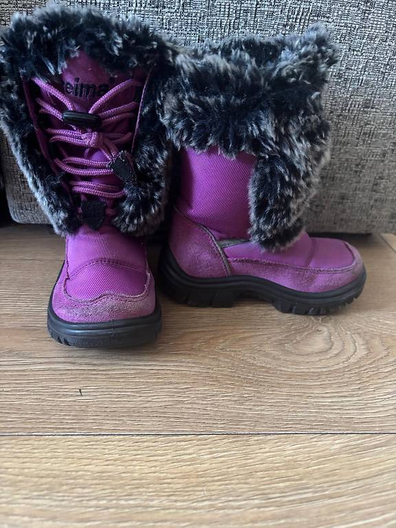 Winter boots with a fully waterproof bottom. The inner insulation can be removed. There is slight visual wear, such as insulation inside has bunched up. Size 25, but realistically corresponds to a larger size, so I indicated size 26. Meeting in person in Jelgava or sending through parcel machines.