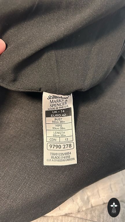 Valmistatud Lätis. Kleidi pikkus 102 cm, kaenlaaluste all 50 cm, varrukas 45 cm.