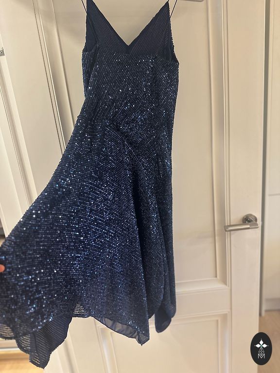 Ted Baker buvo labai žaismingoje nuotaikoje, kai kūrė šią suknelę. Ji turi nestandartinį kirpimą ir drąsią spalvų kombinaciją. Suknelė moteriai, kuri drįsta būti savimi, nepaisydama stereotipų ir konvencijų. Mažas, akcentuotas užtrauktukas nugaroje ir ilgas, paslėptas užtrauktukas šone. Matmenys: krūtinė 43 cm; suknelės ilgis nuo peties 91 cm; siauriausia vieta ties juosmeniu: 42 cm.