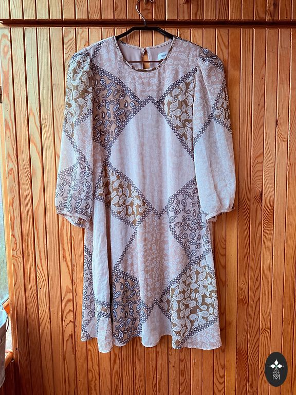 Skaista kleitaņa svētkiem un ikdienai. Vilkta tikai pāris reizes. Garums no plēca 87 cm.