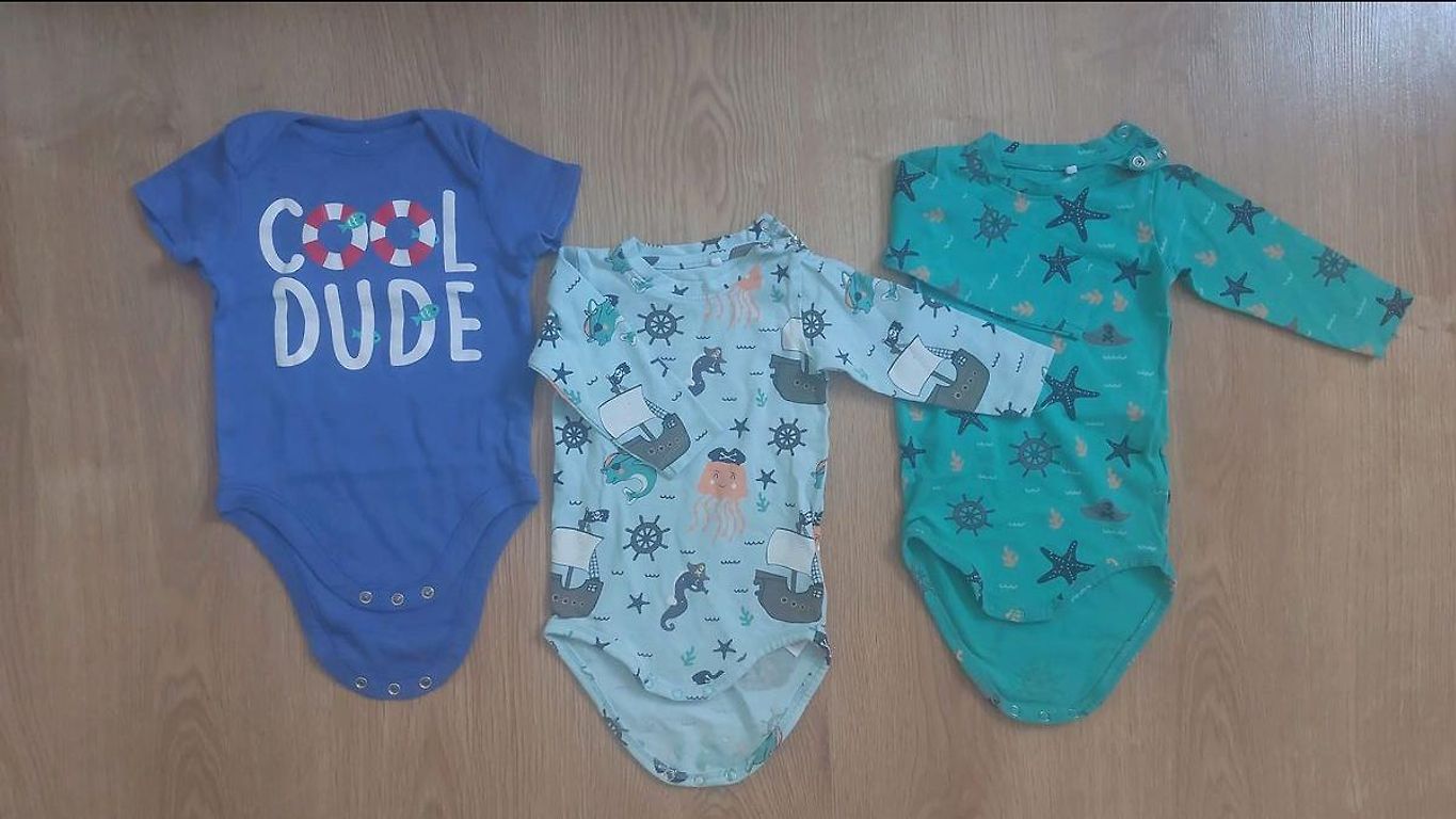 ✅ 3 шт. бодиков Me Too (темно-синий, светло-синий, белый) - с кнопками на обоих плечах. Немного б/у, в отличном состоянии. Очень мягкий, приятный органический хлопок.