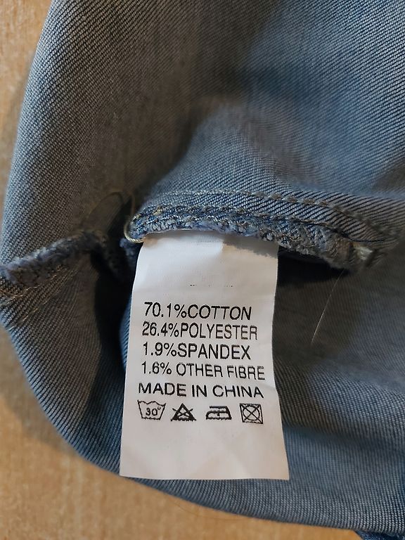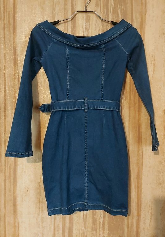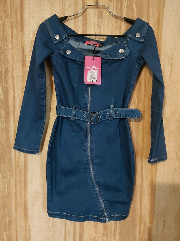 Diezgan plāna staipīga džinsa auduma kleita. Ir josta,kabatas. Centos detaļas pievienot bildēs. Ļoti ērta. Rociņas var atpogāt.