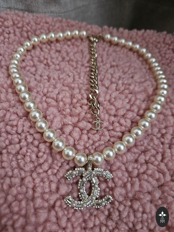 New pearl necklace. Handmade. Brought from Taiwan. Length 46cm. The brooch can be adjusted to different heights.