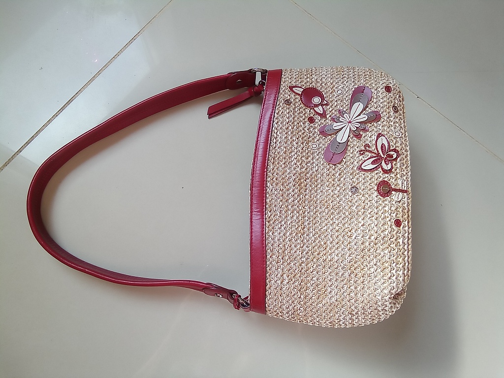 A very cool gem from Coccinelle. Size 27*20*10. A fairly spacious shoulder/crossbody bag for everyday use and special occasions. The color is between burgundy and purple.