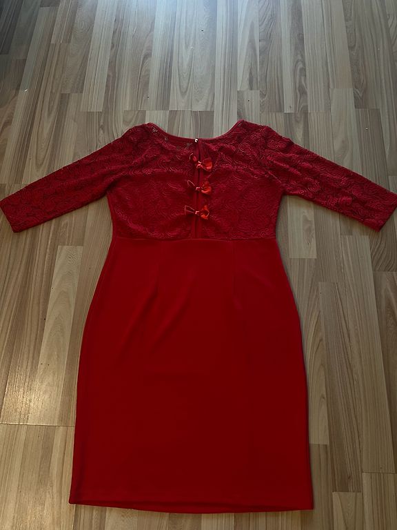 Bez defektiem. Ļoti skaistā krāsā. Sānos kabatas. Derēs gan svētkos, gan ikdienā ar žaketi vai uzvelkot apakšā krekluņu (var izmantot kā sarafānu). Ērta. 36. izm