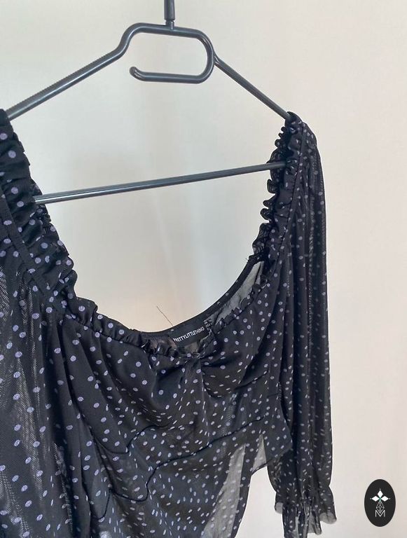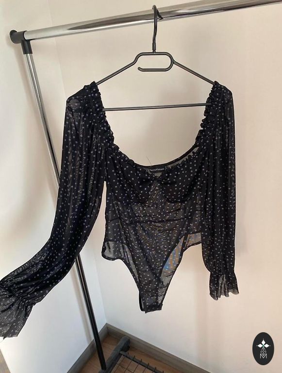 Ļoti skaisti izskatās ar klasiskām biksēm,vai svārkiem.Elegance! Melns+ zelts! Defektiņš praktiski nemanāms(5.att)nedaudz burtiņš cietis.