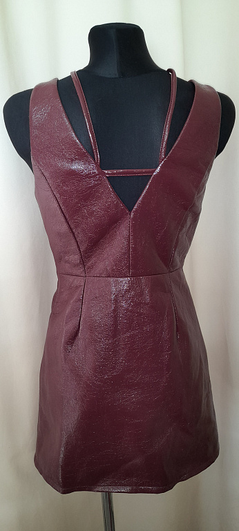 Viršutinė kraštinė (po pažastimis) 36 cm, gali būti ištempta iki 40 cm. Likusią suknelės dalį galima ištempti iki 50 cm. Suknelės ilgis 107 cm. Tikrąją spalvą sunku pagauti, panaši kaip 2 paveikslėlyje. Suknelę galima transformuoti iš maxi į mini, tiek raukšlėjant, tiek užlenkiant. Žinoma, galima naudoti ir kaip sijoną. Audinys sintetinis, tačiau ant kūno minkštas ir malonus.