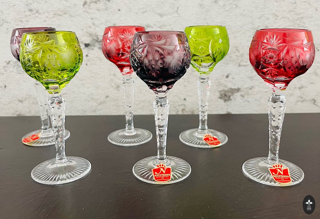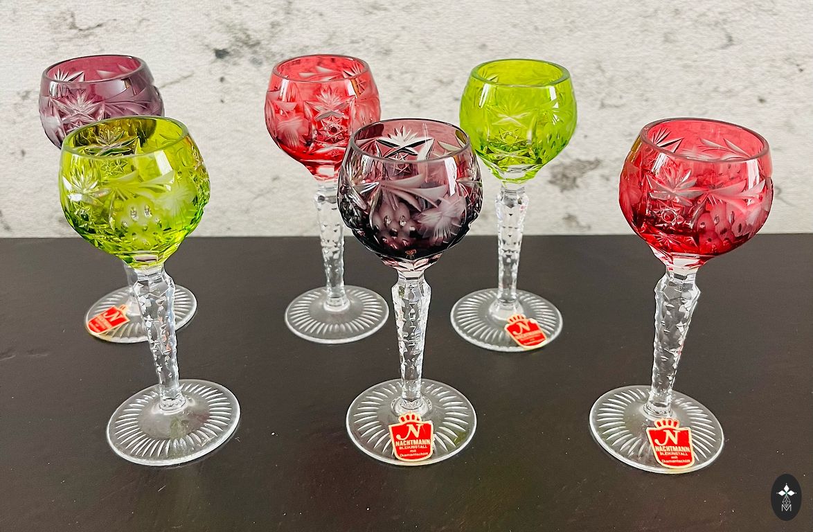 6 klaasist joogiklaasi vaatega vanale Riiale, kõrgus 15 cm, läbimõõt 6 cm, täiuslikus seisukorras.