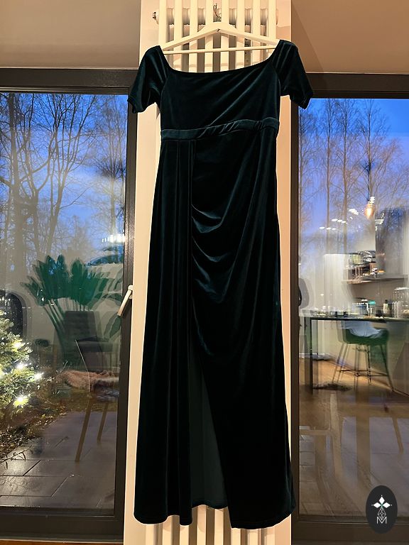Skaista kleita ar fliteriem, vecrozā tonis, garums no pleciem līdz kleitas apakšmalai apmēram 120 cm, bez defektiem.