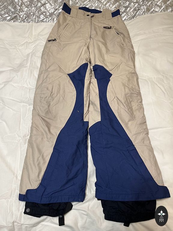 Everest slēpošanas bikses, izmērs 170, viduklī regulējamas. Es vilku uz S izmēru. Ir nelielas nolietojuma pazīmes, piemēram iekšpusēs starās un citur materiāls nedaudz tumšāks palicis. Iespējams var atmazgāt. Šekuma vietā askētiski pa šuvi nedaudz sašūts.