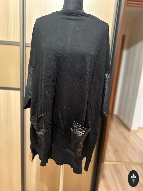 Nuostabus trumpas megztinis su kaklaraiščiais, iš vilnos, pagamintas Italijoje, dėvėtas 1 kartą.
