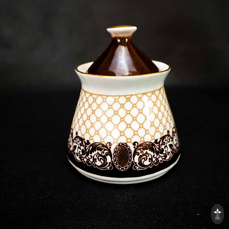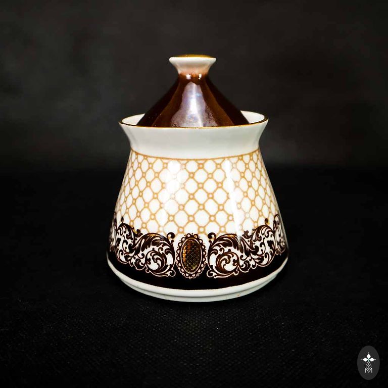 Komplekts ar 15 traukiem - 6 krūzītes un 6 apakštasītes, kanna, cukurtrauks un trauciņš pienam. Krūzīte - 170ml.